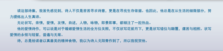 当然,暇不掩瑜,这些诗作,可读性很强,是作者以诗歌艺术提炼生活本真的结果。