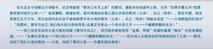 落笔时的我,热诚期待,候望,渴盼读到更多,更精辟诠释、解读、品頤《黄河与长江》这首诗篇的大德大智,所读出的深切感悟;所写出的华彩文章。 |