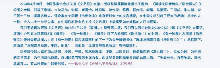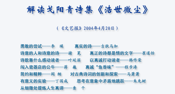 戈阳青先生诗词很鲜活,但思维跨度大,有时侯感到跟不上他的思路,这些都很值得思考。 |