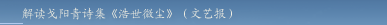 词里有一些很好的意境,用现代的语言是难以表现的。但戈阳青先生的有些探索是比较可喜的,如《沉江怨——〈离骚碑铭〉断想》中,“简直是,跨越沧桑两千年。”、“活生生屈原,路漫漫,其修远……”等就是把现代语言放在词里,这是非常好的运用。像《答辛弃疾》,也有现代语言放在里面,很新鲜,很生动。