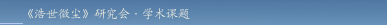 ◎2008年4月1日,《浩世微尘》研究会首次公布关于《浩世微尘》学术研究方案。方案共分六个部分: 1.《浩世微尘》与传统文化的渊源关系。 2.《浩世微尘》与中国现当代文学相关性研究。 3.《浩世微尘》在新诗发展史的重要地位。 4.《浩世微尘》对人性美的讴歌。 5.《浩世微尘》在形式上的突破。 6.《浩世微尘》审美意象探源。
