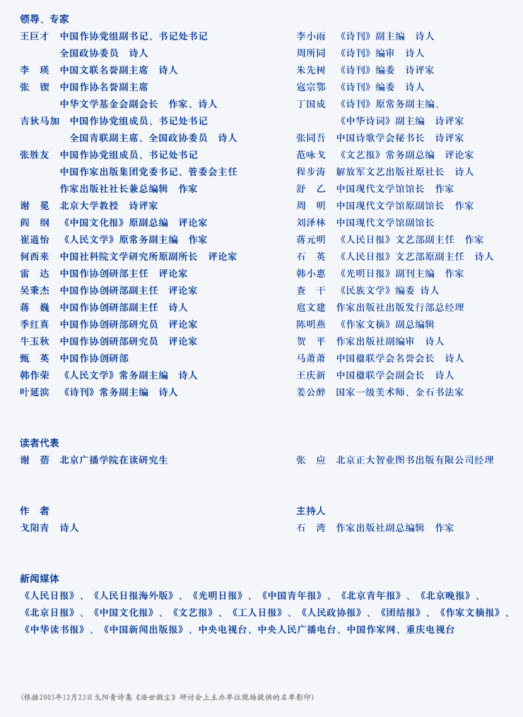 诗集《浩世微尘》(作家出版社出版)研讨会12月23日在京隆重举行。