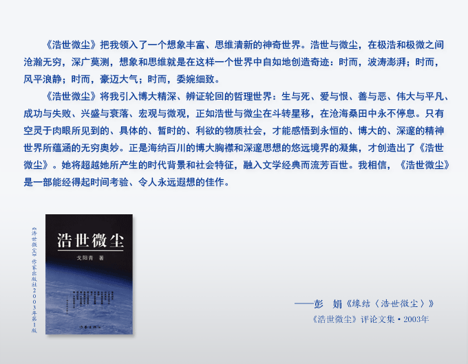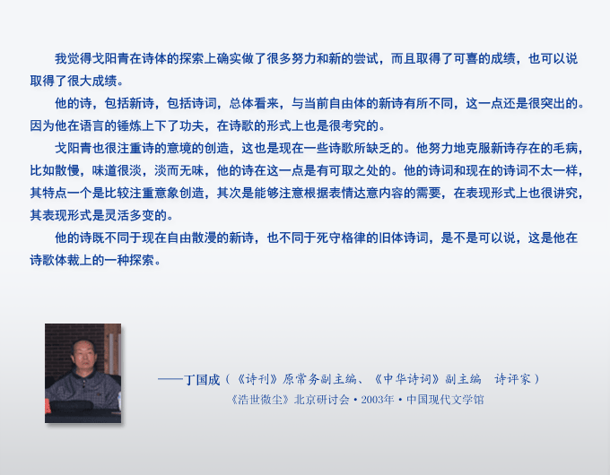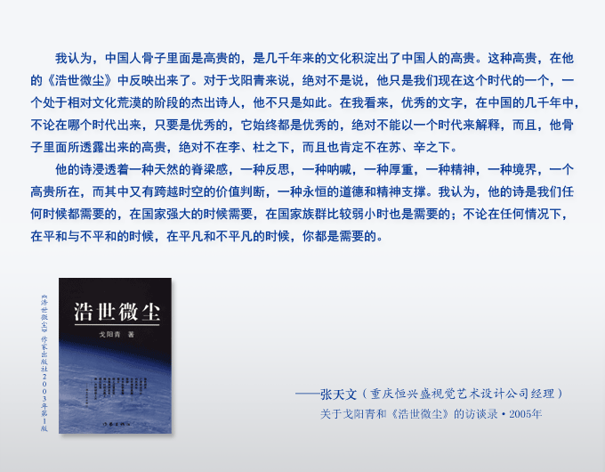 2010年10月1日,《浩世微尘》文学经典网今天特发表一组戈阳青的豪放诗词,以飨读者。