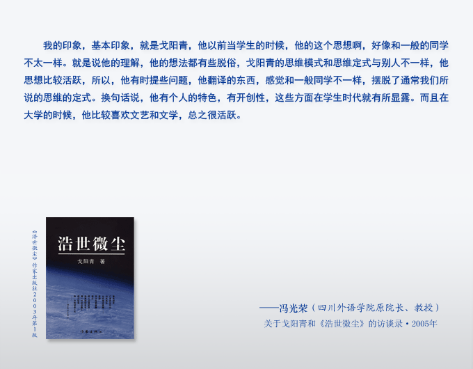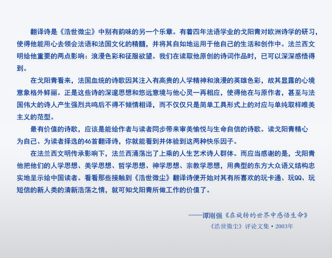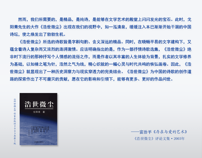 2012年9月5日,《浩世微尘》文学经典网发表戈阳青新作诗《十八岁生日的少女》。